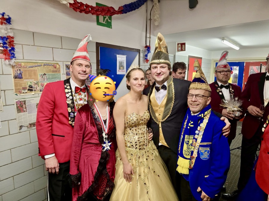 Unser Prinzenpaar Patrick I. und Beate I. sowie Präsident Heiko nahmen am Sektempfang teil und überreichten dem amtierenden Prinzenpaar sowie ihrem Präsidenten unseren Vereinsorden und liebevoll vorbereitete Gastgeschenke. Solche Gesten stärken die Freundschaften zwischen den Vereinen und machen Karneval zu etwas ganz Besonderem.